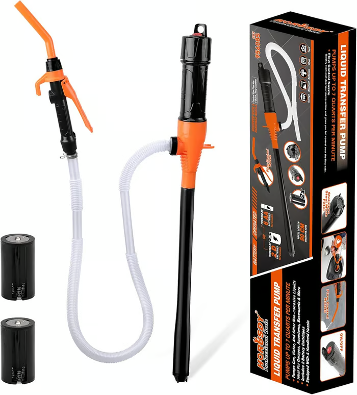 Comfortable to carry: Can be powered by 2 x D batteries or 6 x AA batteries (batteries not included). Slide switch design, simple and convenient; The hook design on the top is easy to store and use, the connection between the hose and the pump is pre-fixed, so you don't have to worry about connecting the hose or worrying about leakage.